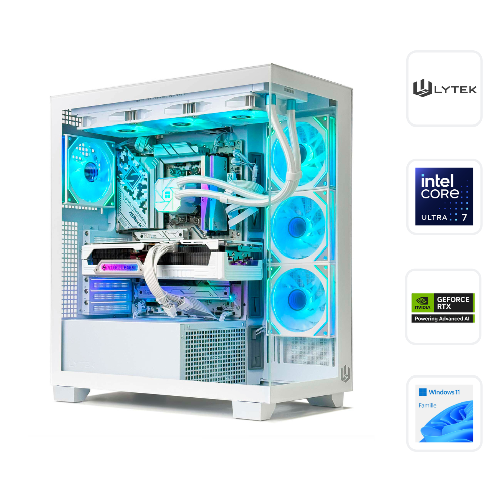 Un PC FULL WHITE HAUT DE GAMME qui combine puissance de calcul, design soigné et composants nouvelle génération. Équipé de la NVIDIA GeForce RTX 5090 32 Go, du processeur Intel Core Ultra 7 265KF, de 32 Go de RAM DDR5 et d’un SSD Samsung PCIe 5.0 ultra rapide, ce monstre est conçu pour le 4K, la création pro, l’IA et les tâches les plus exigeantes. Le tout, dans un boîtier vitré, bien ventilé, avec refroidissement watercooling RGB et une alimentation 1350W Platinum compatible PCIe 5.0. C’est la machine ultime pour ceux qui ne veulent aucun compromis.