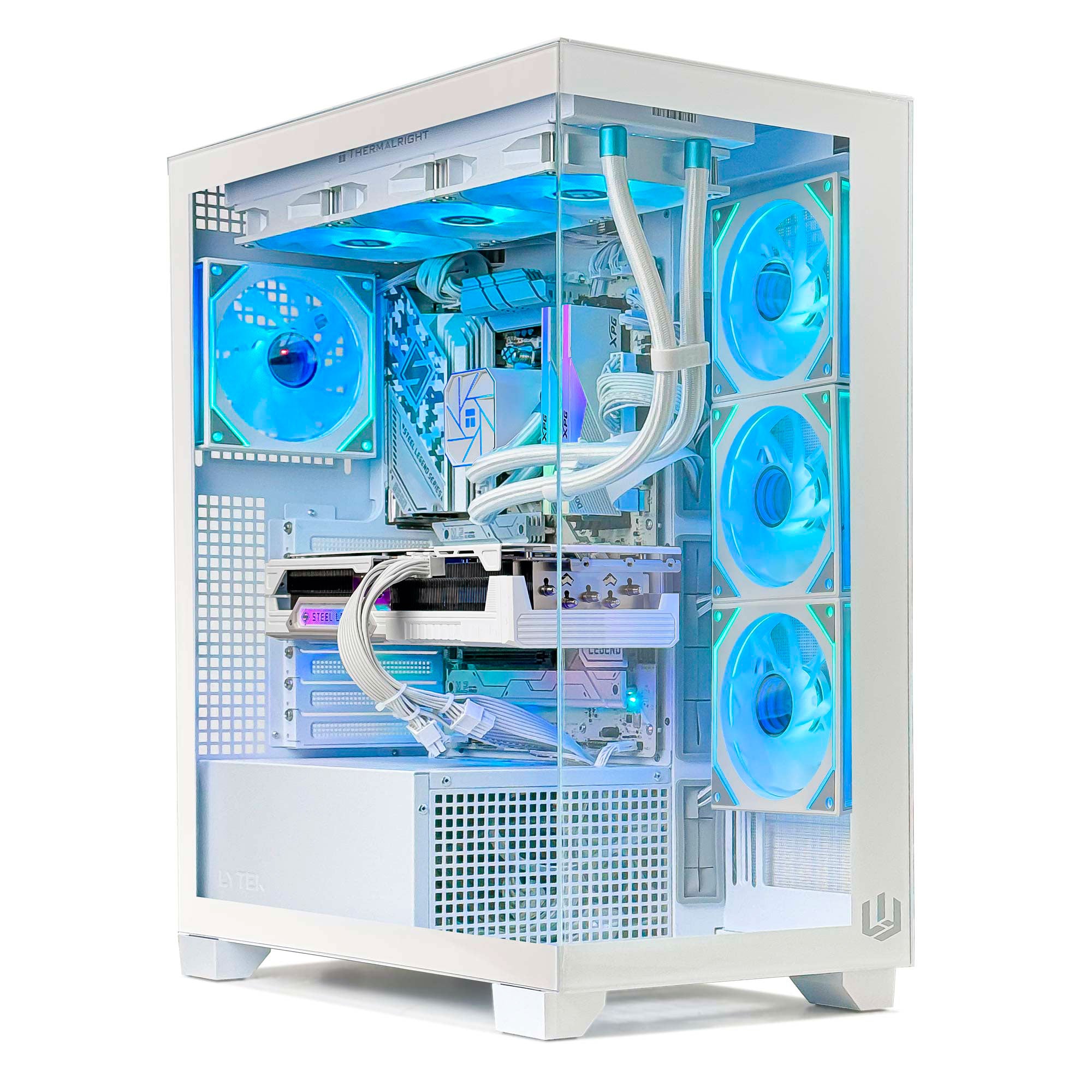 Lytek Vision Pro ARGB - Blanc : Boîtier panoramique haut de gamme avec vitres latérales, design ARGB immersif et gestion thermique soignée.